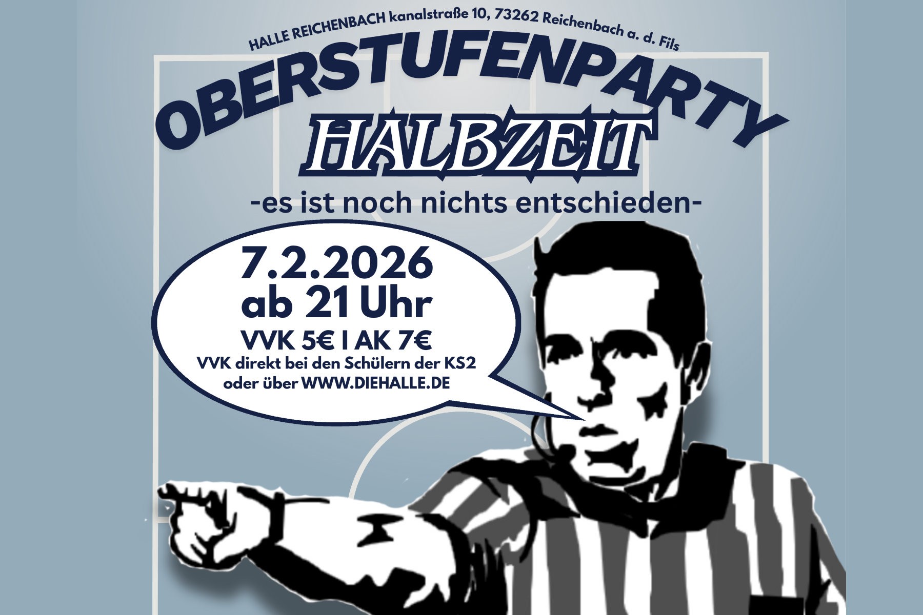 Kulturinitiative die Halle Reichenbach e.V. Kanalstraße 10, Reichenbach a. d. Fils, Baden_Württemberg, GermanyDie KS2 des Mörike Gymnasium Esslingen und die Halle Reichenbach hauen wieder einen raus! Die nächste fabulöse Oberstufenparty steht an. Diesmal unter dem - leider wahren - Motto "HALBZEIT -…